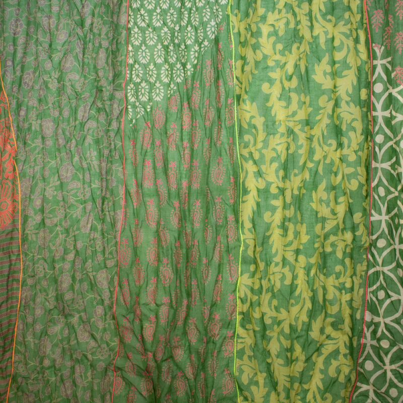 Sarah und Sally | Schal 100 % Baumwolle – Mustermix Grün, Ecru, Gelb mit Rot mit Stickerei