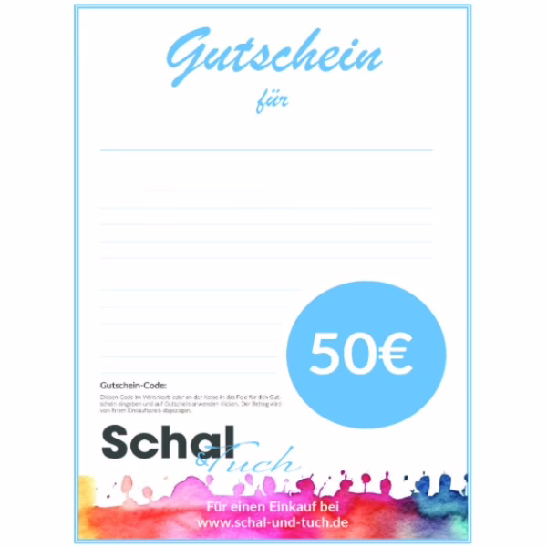 Den Gutschein kannst Du an Deinem Computer personalisieren und mit einer Nachricht versehen. Oder drucke die Datei aus und fülle Sie von Hand aus, ganz wie Du magst. Es ist in jedem Fall ein schönes Geschenk für alle, die sich an Schals freuen.