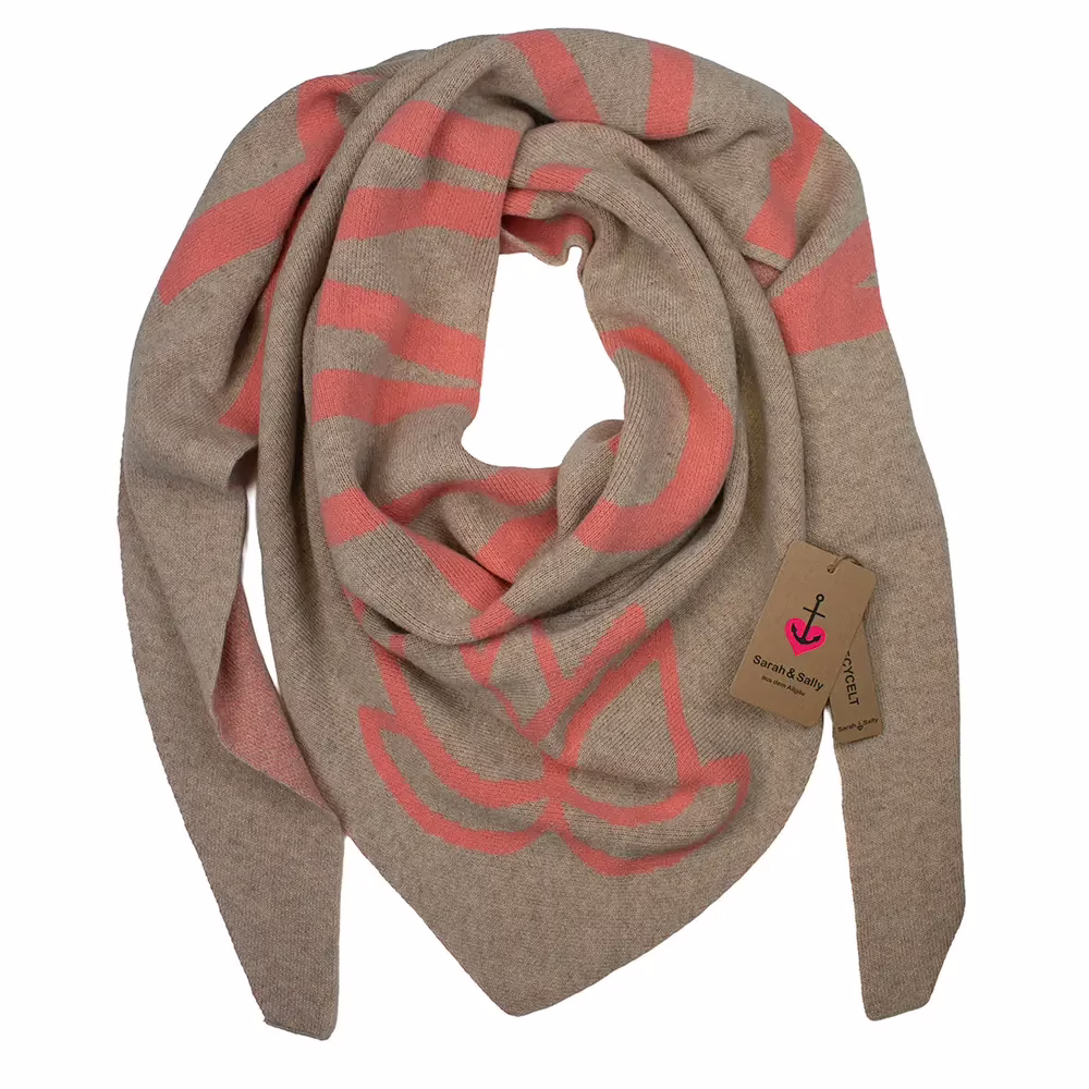 Sarah & Sally | Be Happy – Dreiecksschal in Taupe mit Pink