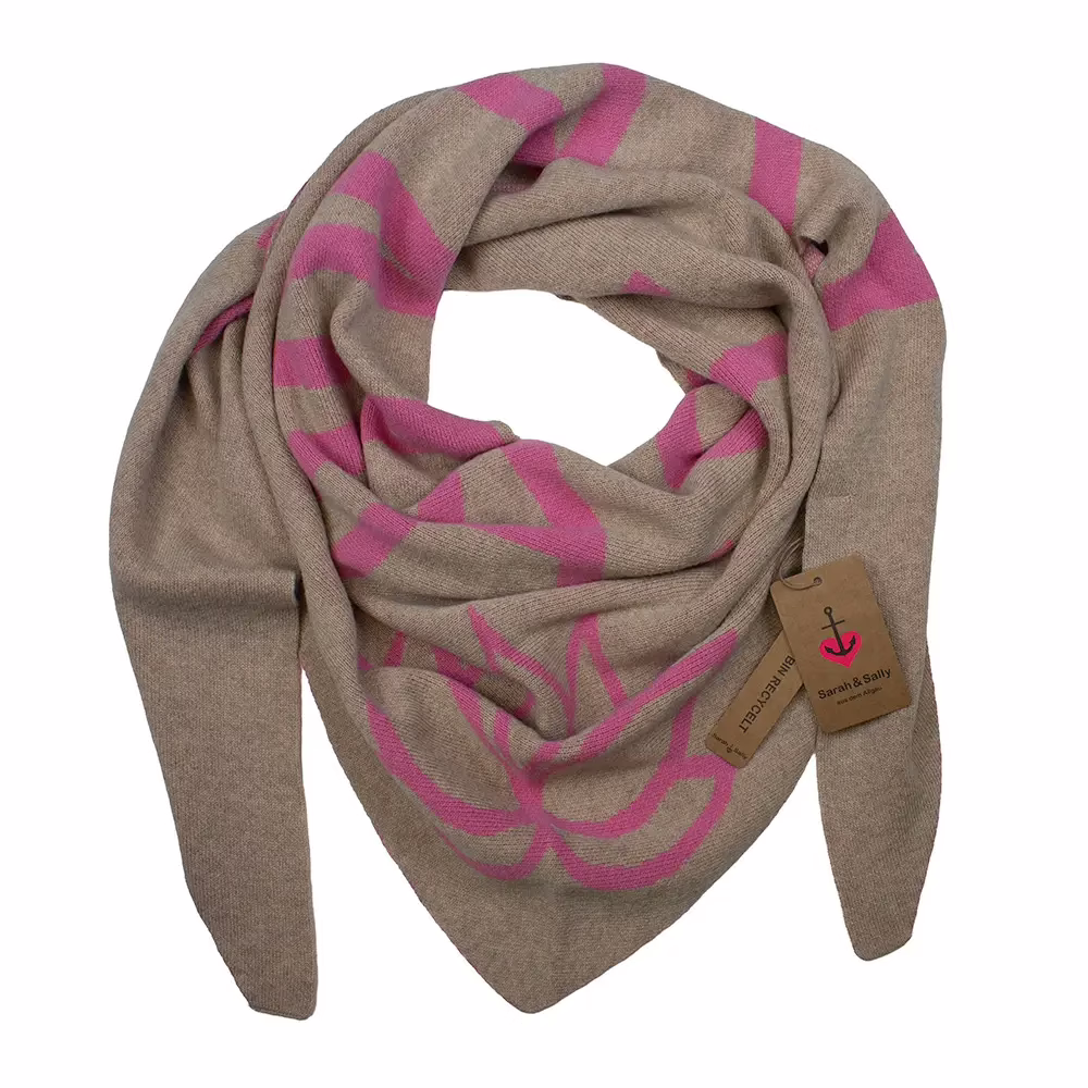 Sarah & Sally | Be Happy – Dreiecksschal in Taupe mit Pink