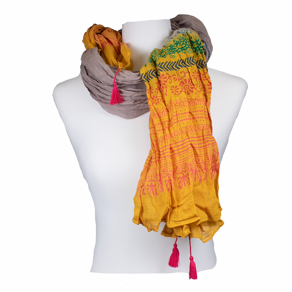 Dieser Schal von Sarah & Sally wird von Hand im Stempeldruckverfahren/Blockprint bedruckt. Da die Farben Deines PC individuell eingestellt sind, kann es sein, dass das Originalprodukt farblich abweicht.