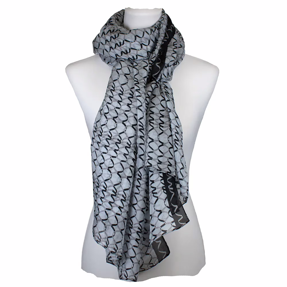 Ahmaddy | Schal 100 % Seide Graublau, grafisches Muster