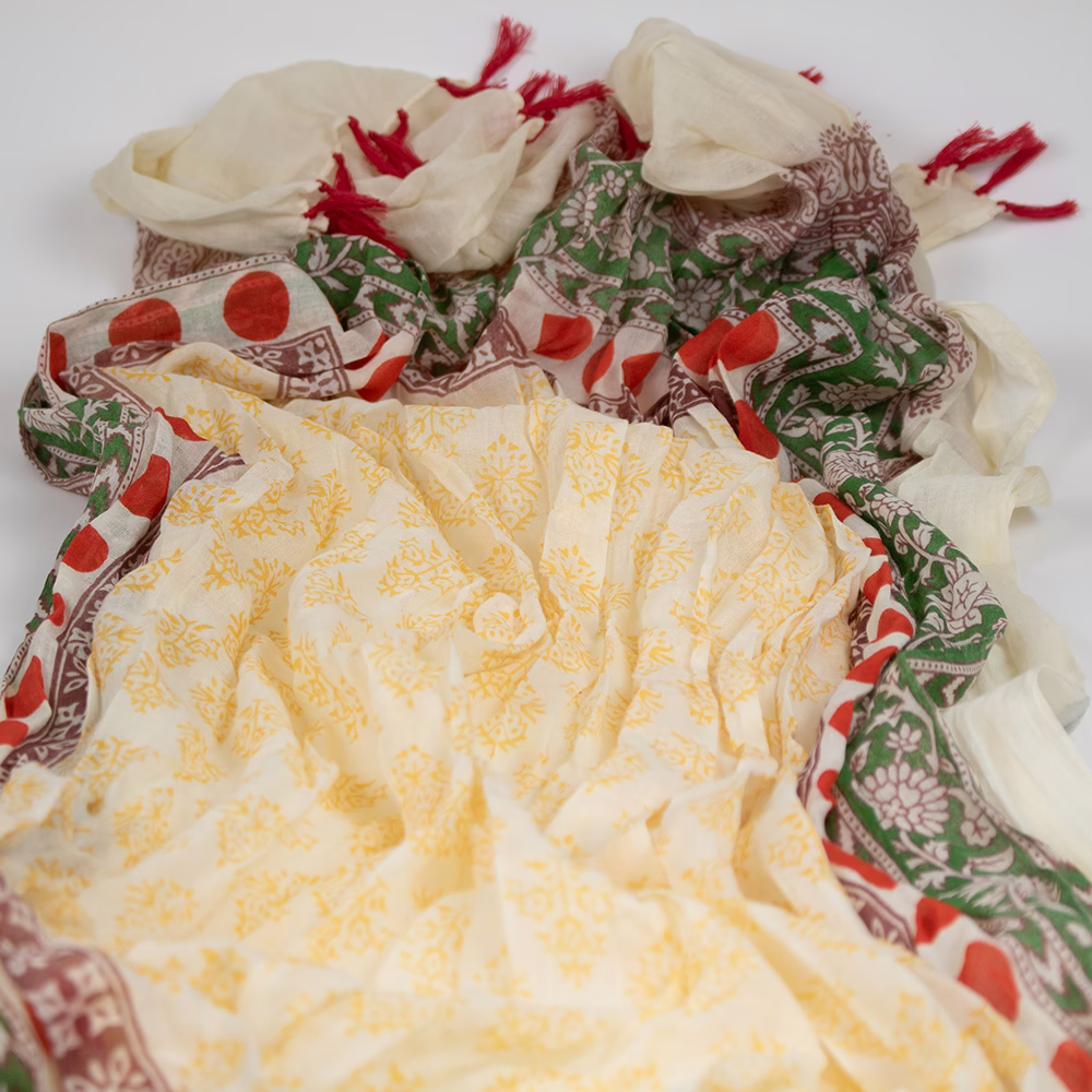 Sarah und Sally | Schal 100 % Baumwolle, helles Gelb und Rot